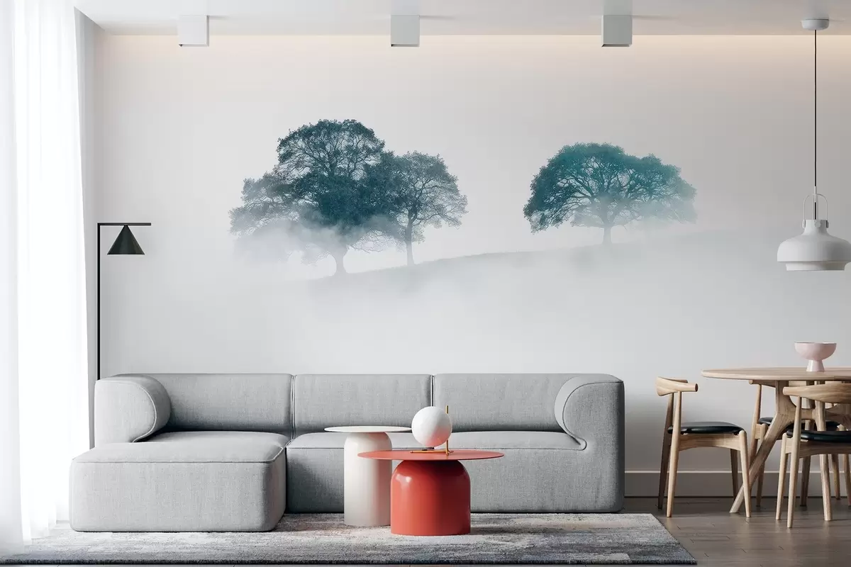 Fotomurales Árboles en la colina, minimalismo, naturaleza, paleta de colores azules Nr. w02148v1