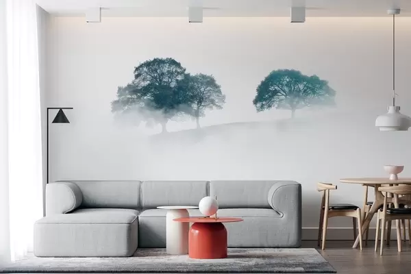 Fotomurales Árboles en la colina, minimalismo, naturaleza, paleta de colores azules Nr. w02148v1