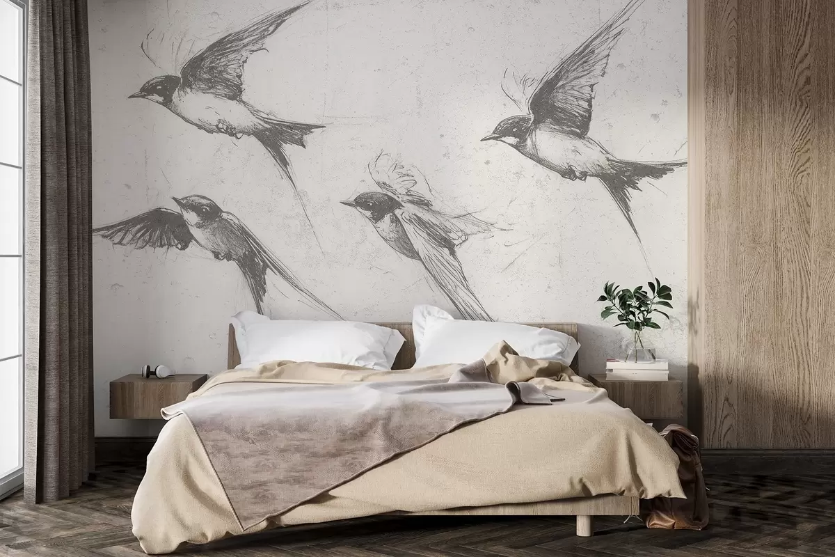 Fotomurales Pájaros voladores, dibujo a tinta, minimalismo, colores grises Nr. w02155