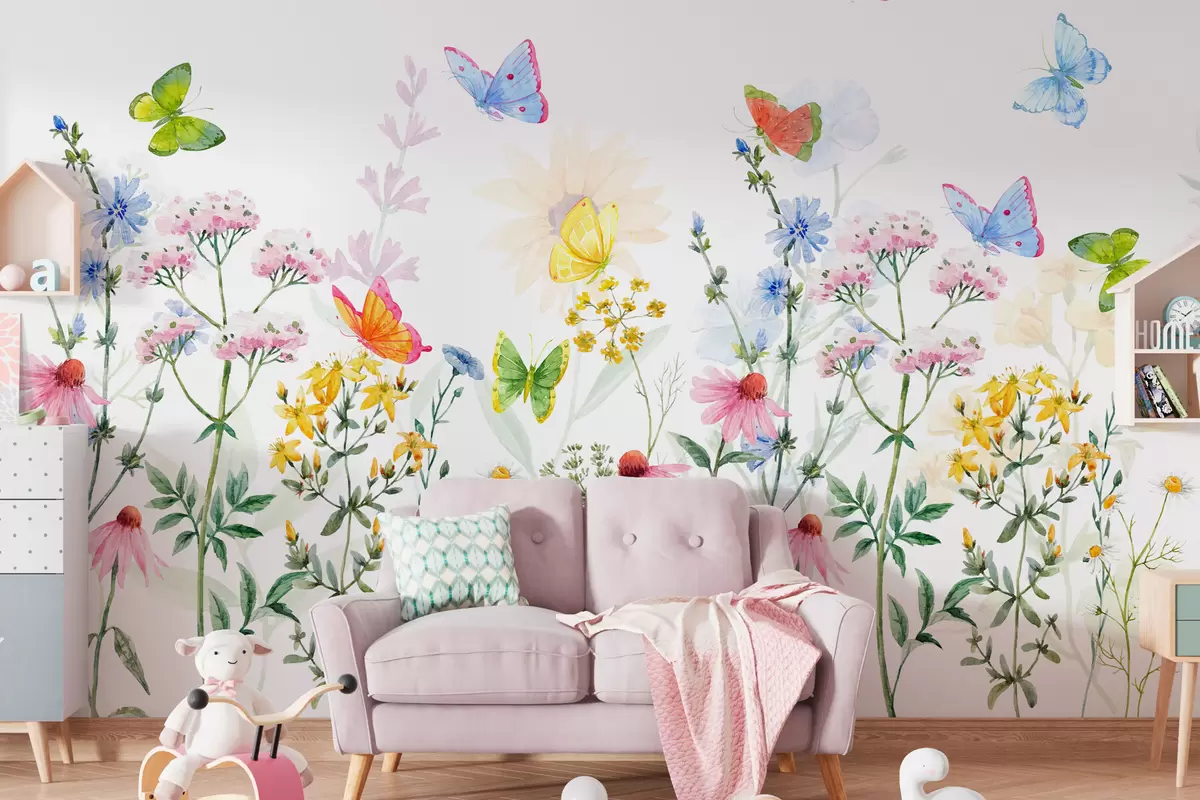 Fotomurales Flores y plantas de colores y mariposas Nr. w02238