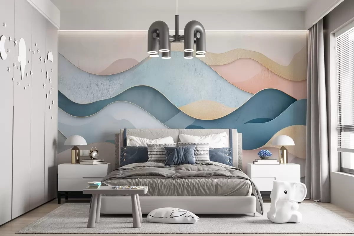 Fotomurales Motivo Art Déco ondulado en colores rosa y azul Nr. w02290