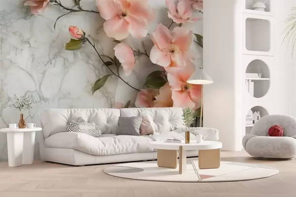 Fotomurales Delicadas flores sobre fondo de imitación de mármol Nr. w02291