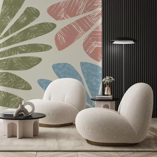 Fotomurales Silueta de ramas frondosas con textura, verde, rosa, azul Nr. w02333v1