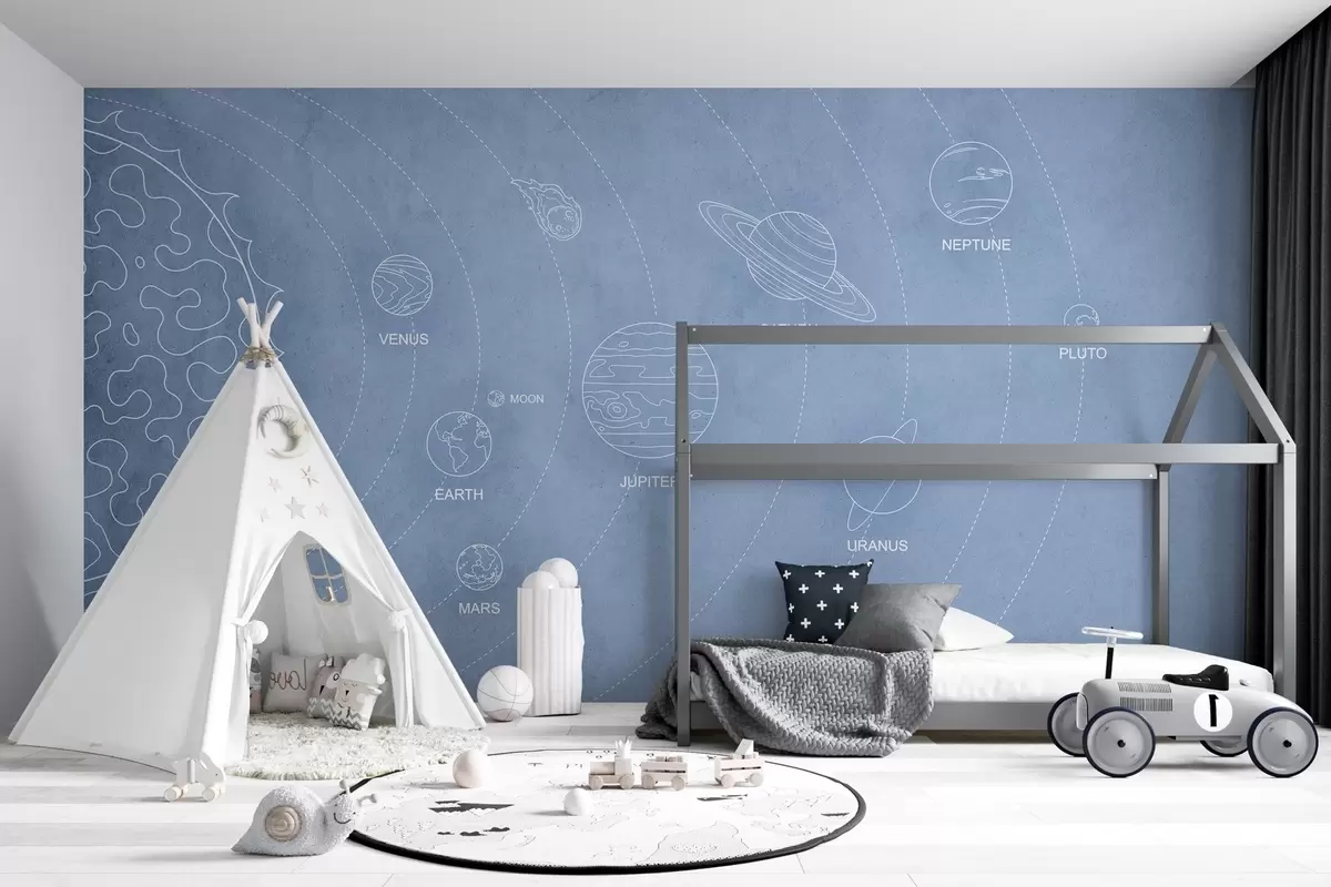 Fotomurales Sistema solar en estilo minimalista sobre fondo azul texturado Nr. w02344v1