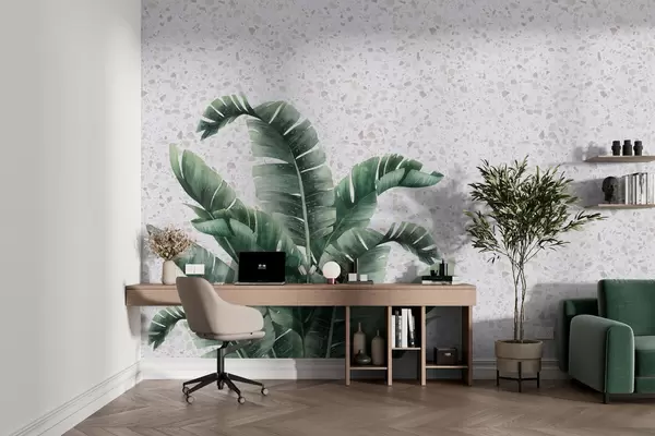 Fotomurales Hojas tropicales y fondo de terrazo Nr. w02376