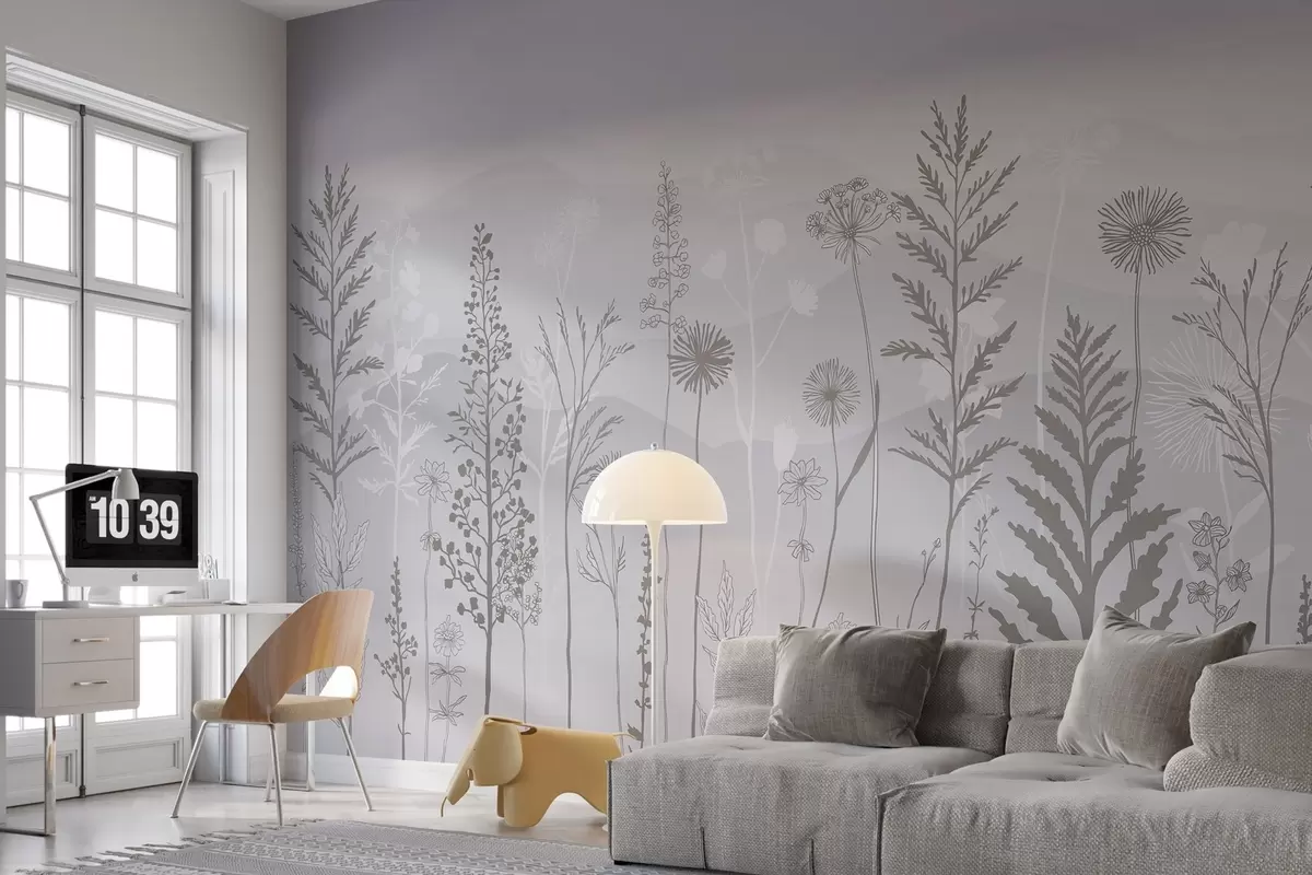 Fotomurales papel pintado ecológico, flores silvestres en tonos grises Nr. w02443