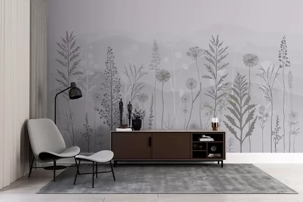 Fotomurales papel pintado ecológico, flores silvestres en tonos grises Nr. w02443