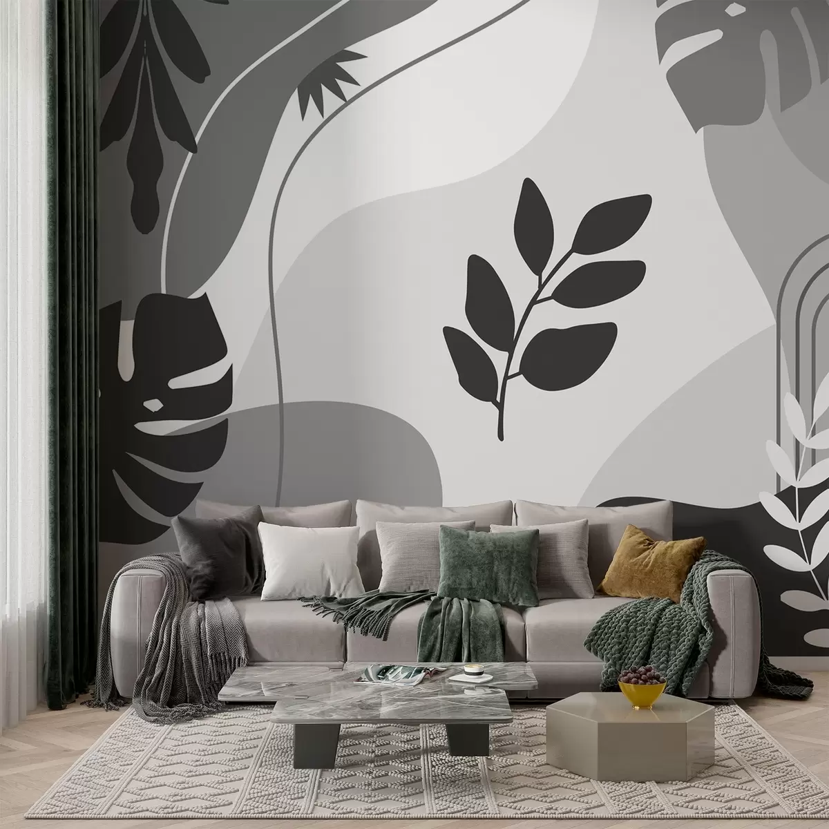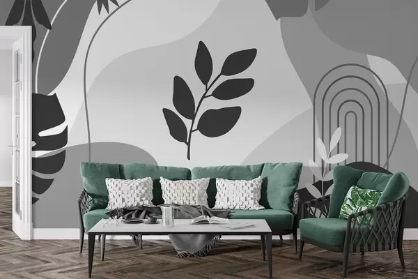 Fotomurales Patrón abstracto con siluetas de hojas Nr. w02462v2