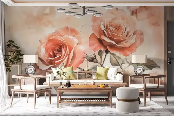 Fotomurales Hermosas rosas rojas en estilo acuarela, floral, colores beige Nr. w02486