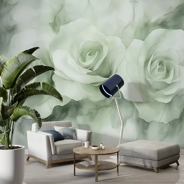 Fotomurales Hermosas rosas, estilo acuarela, colores verdes, bohemio Nr. w02492v2