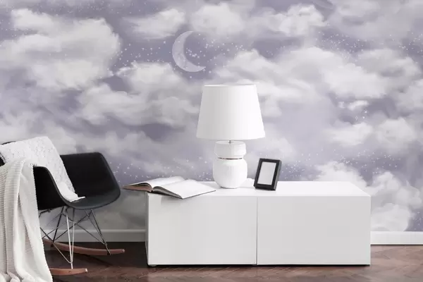 Fotomurales Cielo estrellado con luna y nubes, de ensueño, etéreo, suaves colores morados Nr. w02515v4