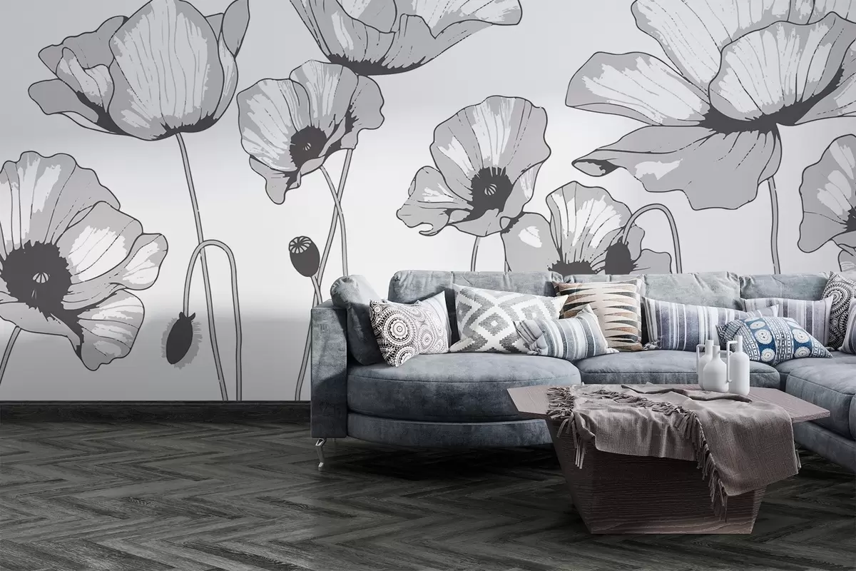 Fotomurales Amapolas blancas y negras Nr. w02528