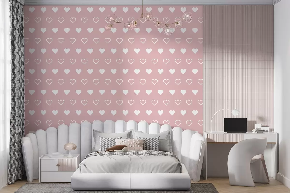 Fotomurales estampado minimalista de corazones sobre fondo rosa Nr. w02548