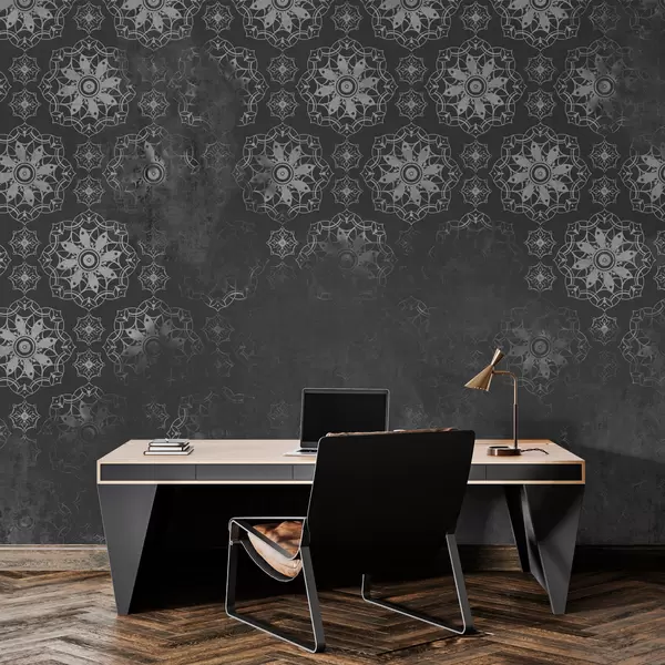 Fotomurales Diseño vintage con elementos de mandala y efecto envejecido en gris Nr. w02551v1