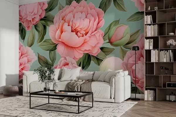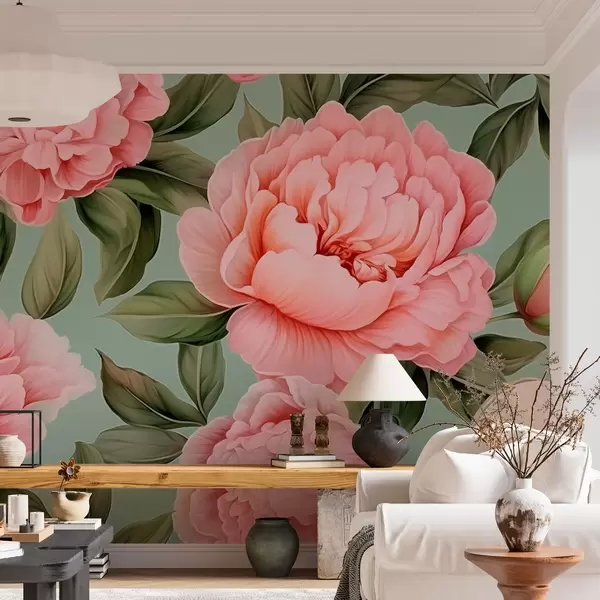 Fotomurales Peonías rosas con hojas Nr. w02570