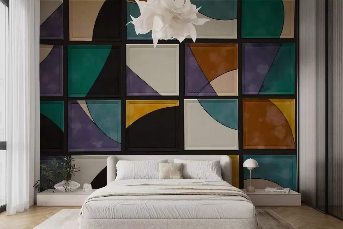 Fotomurales Cuadrados de mosaico de colores sobre fondo oscuro Nr. w02849