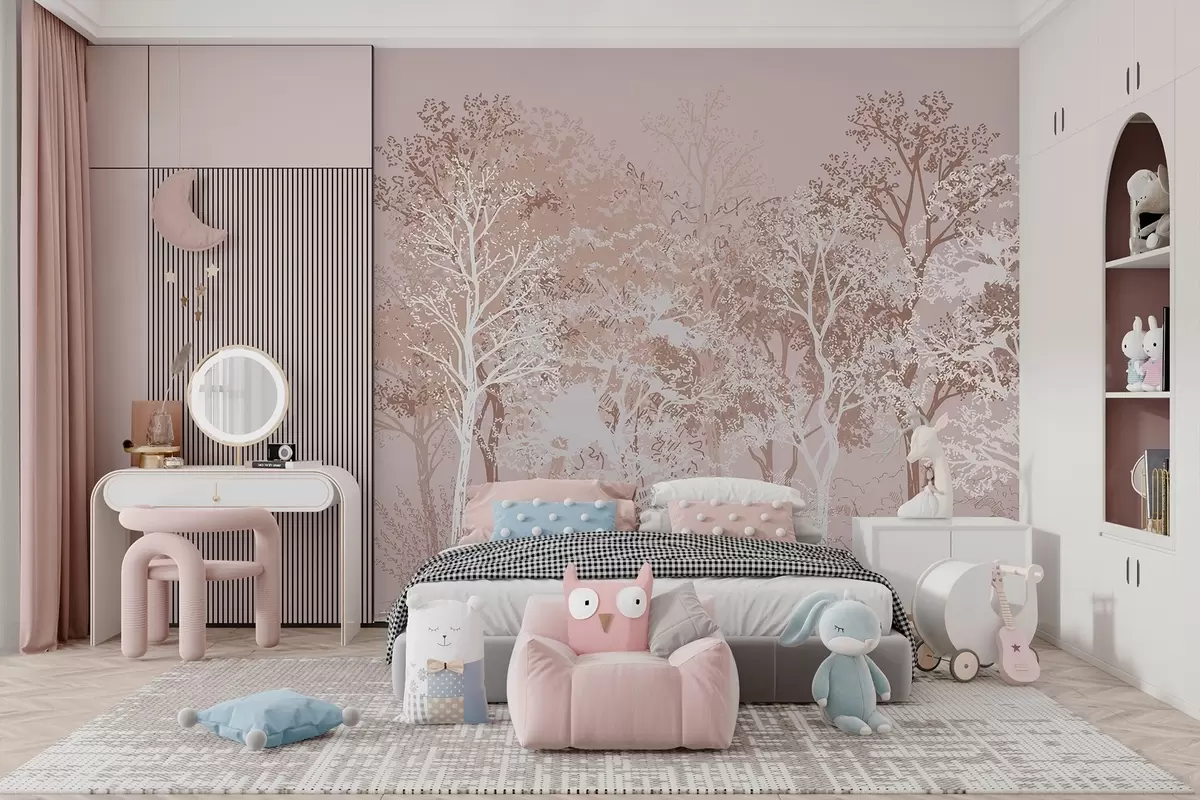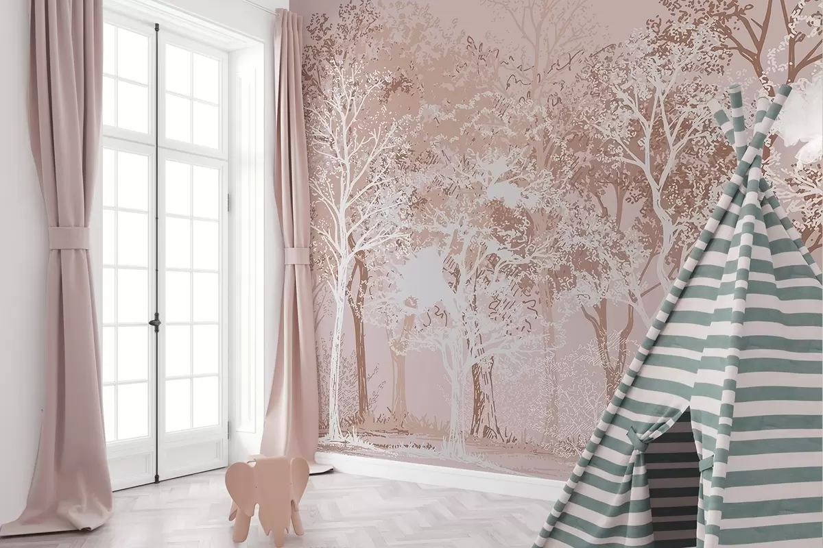Fotomurales Árboles en el bosque, minimalismo, naturaleza, paleta de colores beige Nr. w02930