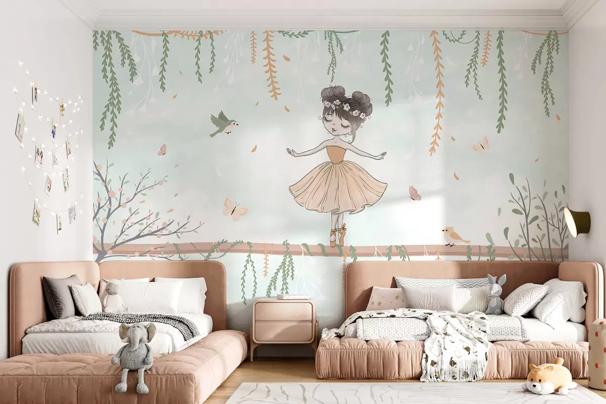 Fotomurales Un paisaje con princesa con pájaros y mariposas Nr. w03003v1