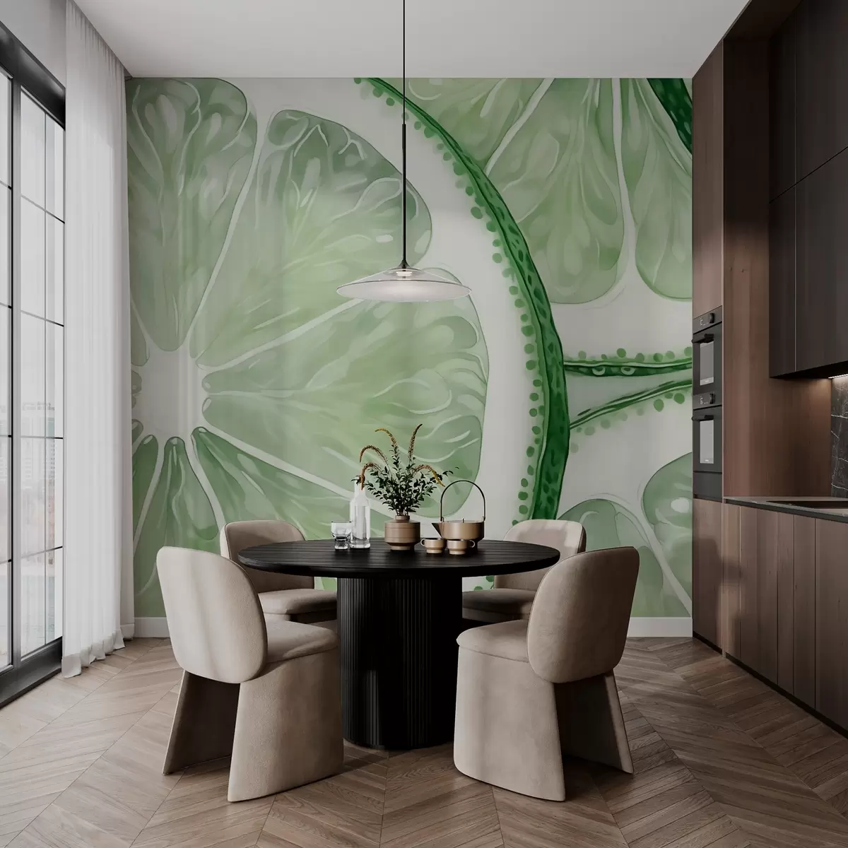 Fotomurales Sombra verde acuarela imitación círculos cítricos Nr. w03026
