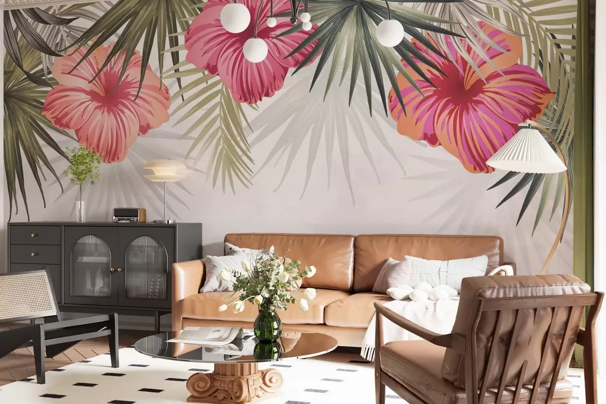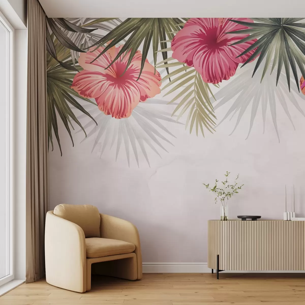 Fotomurales Hojas y flores tropicales desde arriba Nr. w03106