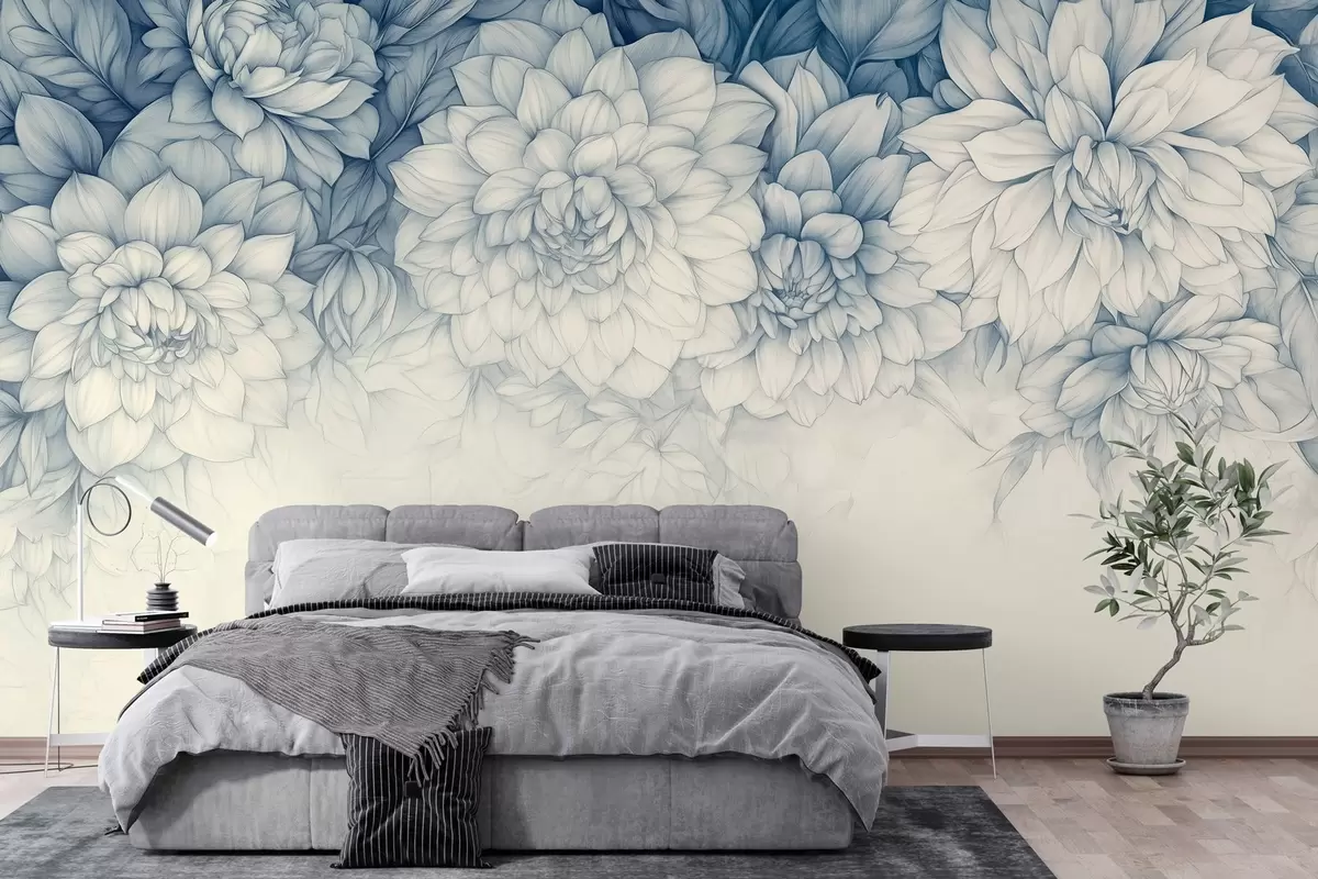 Fotomurales exuberantes crisantemos monocromos colgando de la parte superior Nr. w03110