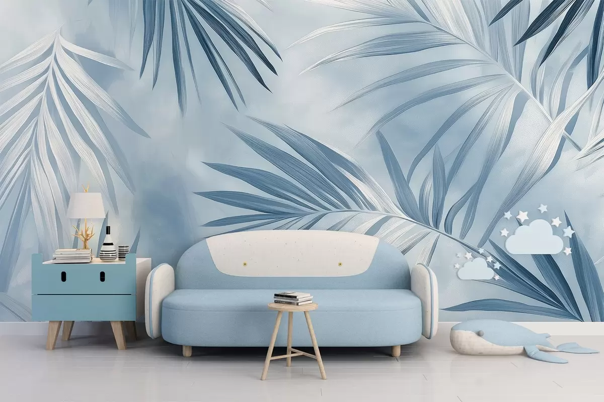 Fotomurales Abstracción de hojas tropicales, palmera, paleta de colores azules Nr. w03153