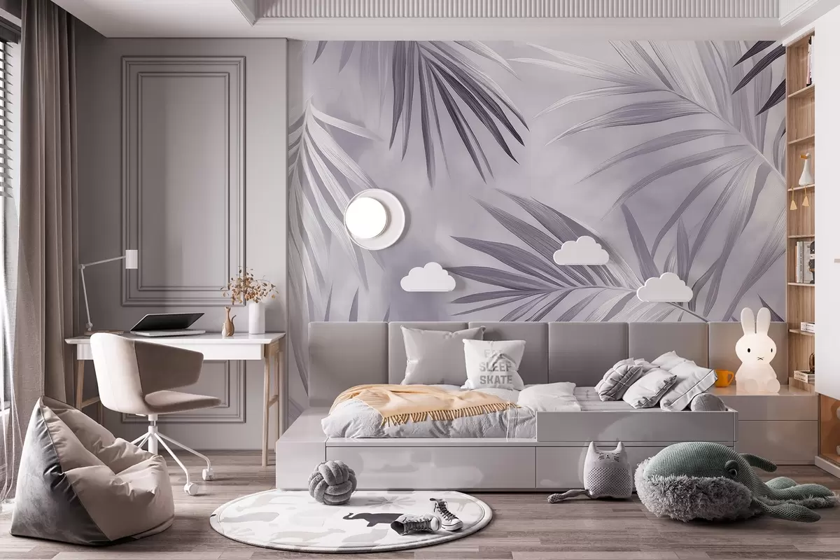 Fotomurales Abstracción de hojas tropicales, palmera, paleta de colores púrpura Nr. w03153v1