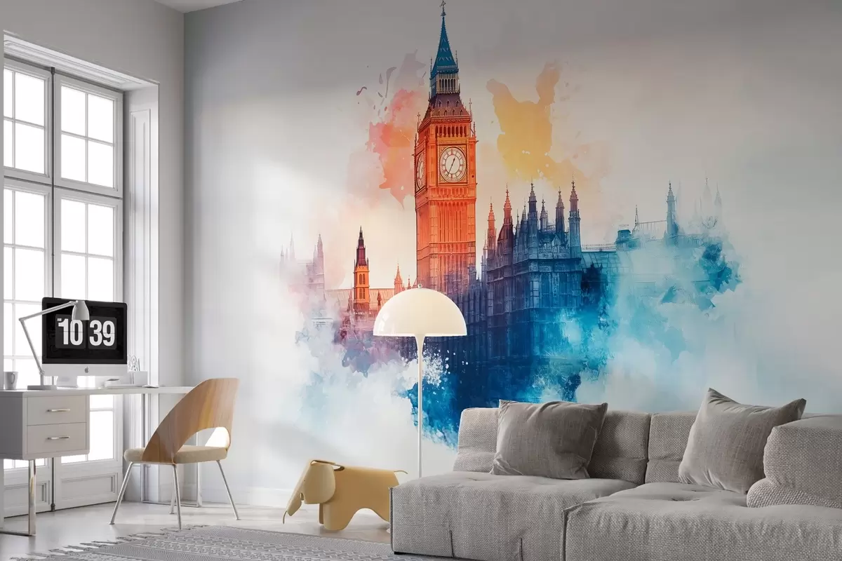Fotomurales dibujo en acuarela del Big Ben sobre fondo claro Nr. w03287
