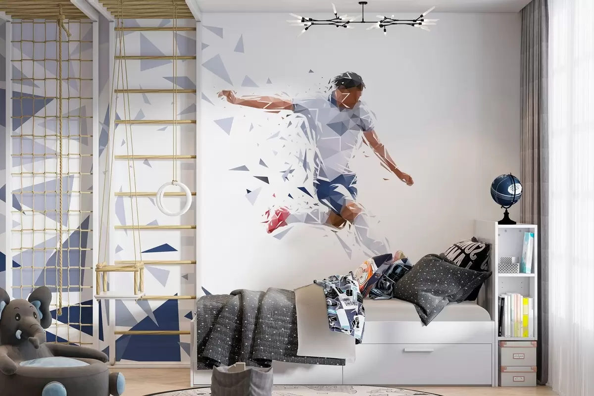 Fotomurales Futbolista dinámico con un estilo poco polvoriento, golpeando el balón Nr. w03289