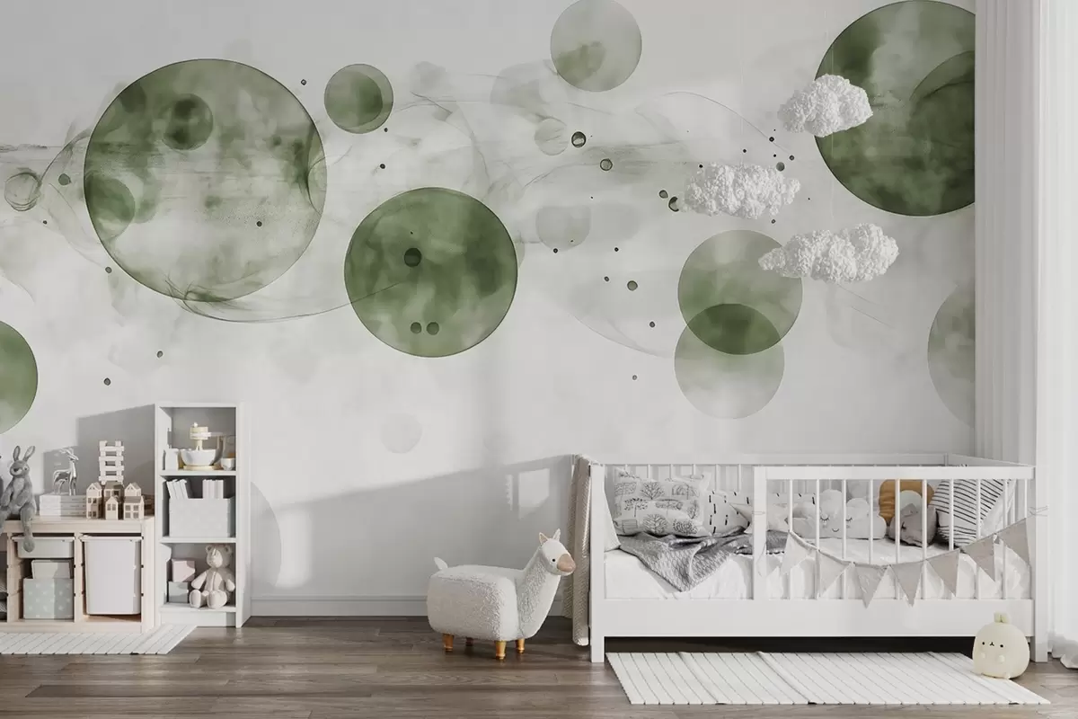 Fotomurales Círculos estilo acuarela, abstracción, etéreo, arte fluido, colores verdes Nr. w03405v1