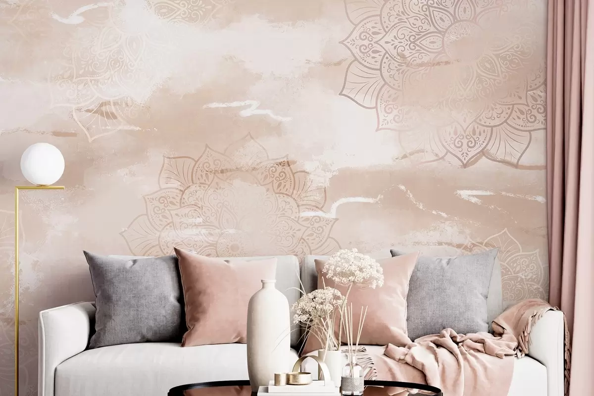 Fotomurales Mandalas sobre fondo pastel, pinceladas vivas, colores beige Nr. w03409