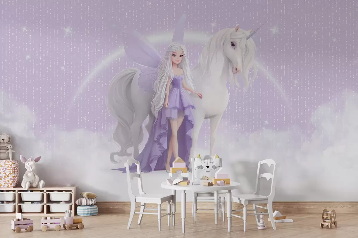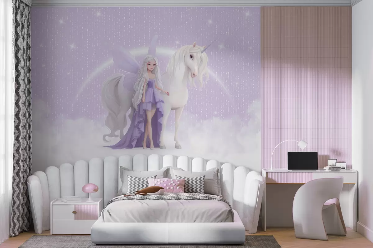 Fotomurales Un hada con un unicornio entre las nubes Nr. w03527