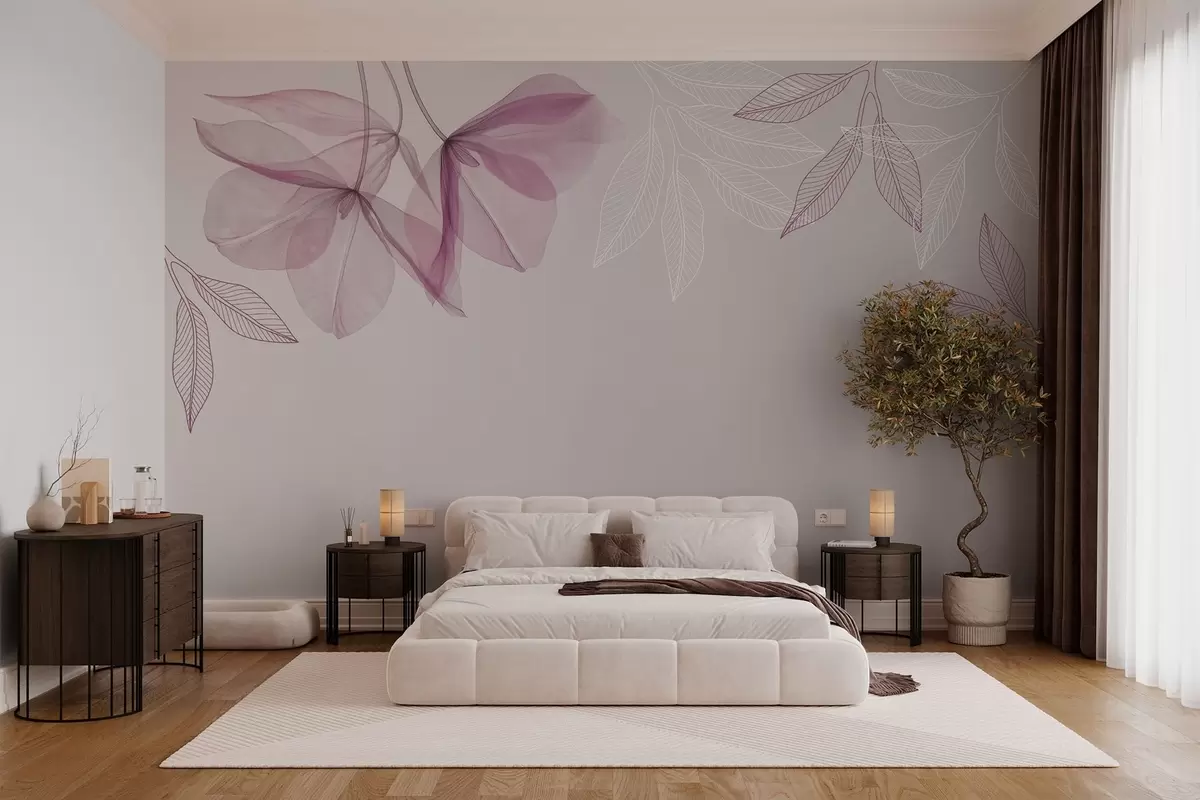 Fotomurales delicadas flores y hojas translúcidas en tonos morados Nr. w03616v4