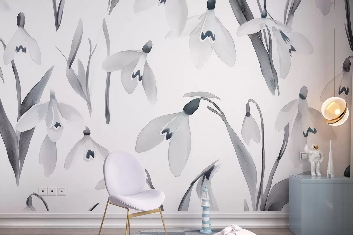 Fotomurales Snowdrops flores en estilo acuarela, colores grises Nr. w03754v1