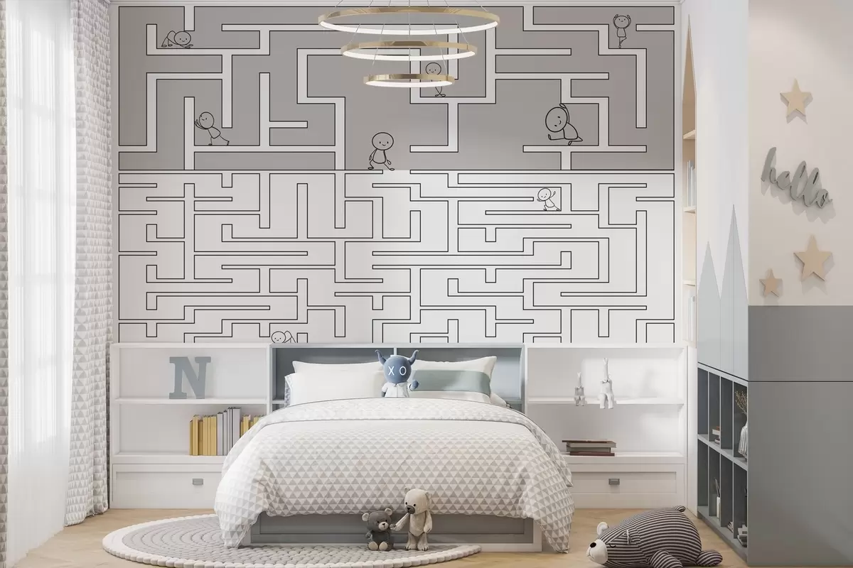 Fotomurales Laberinto en gris claro y blanco Nr. w03873v5