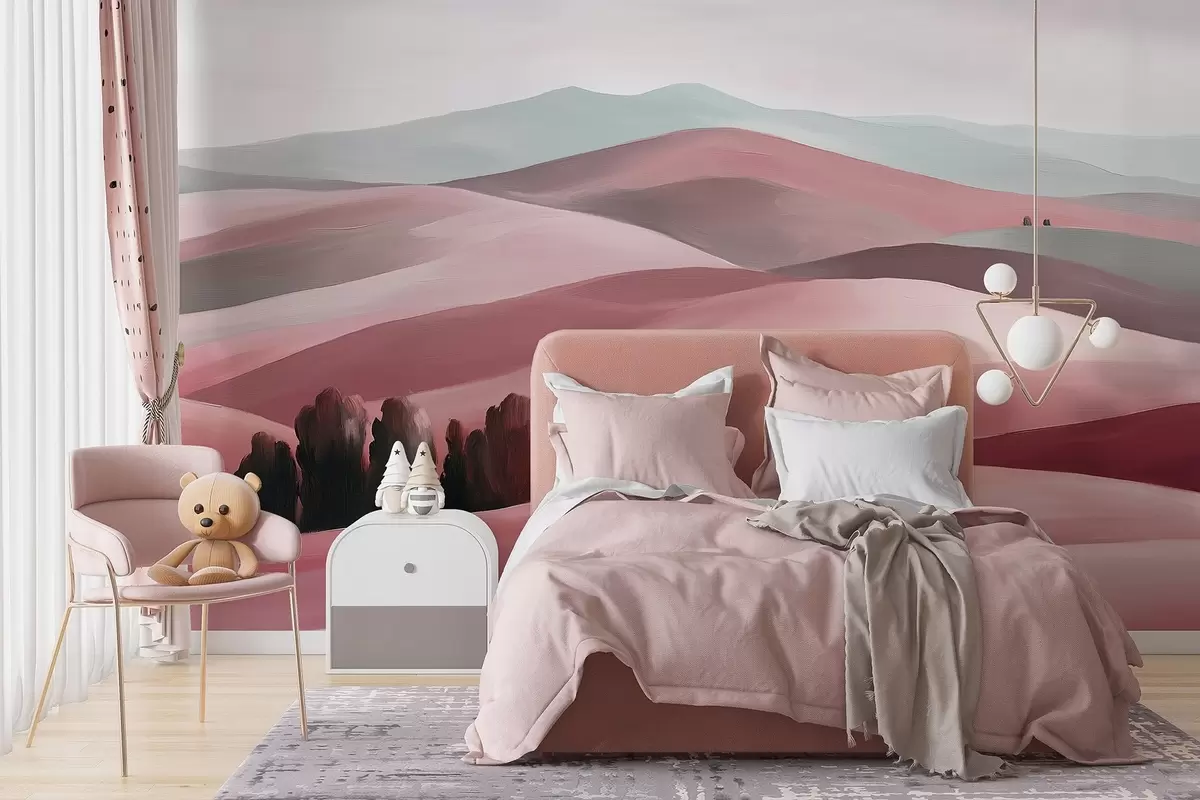 Fotomurales Paisajes con árboles, Toscana, colores rosas, estilo óleo Nr. w03880v2