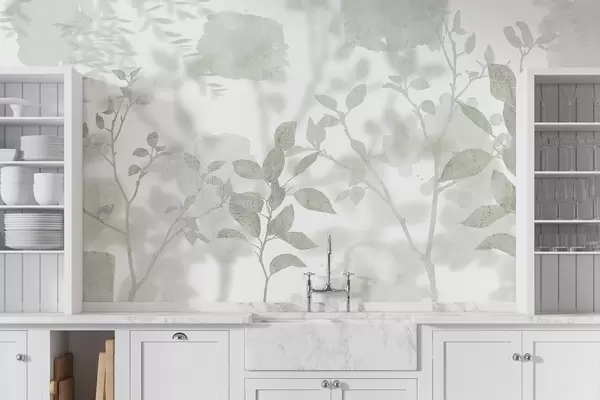 Fotomurales Árboles siluetas, ramas, naturaleza, acuarela, colores verdes Nr. w03911v1