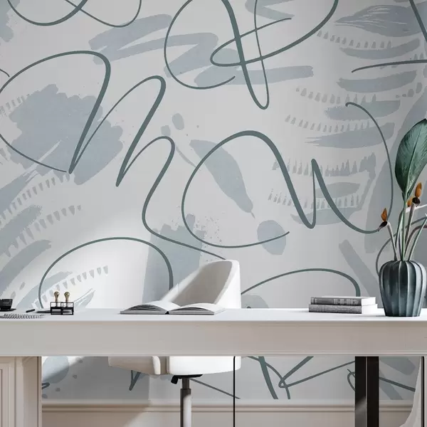 Fotomurales Abstracción caligráfica con letras, pinceladas, color azul Nr. w03913v1