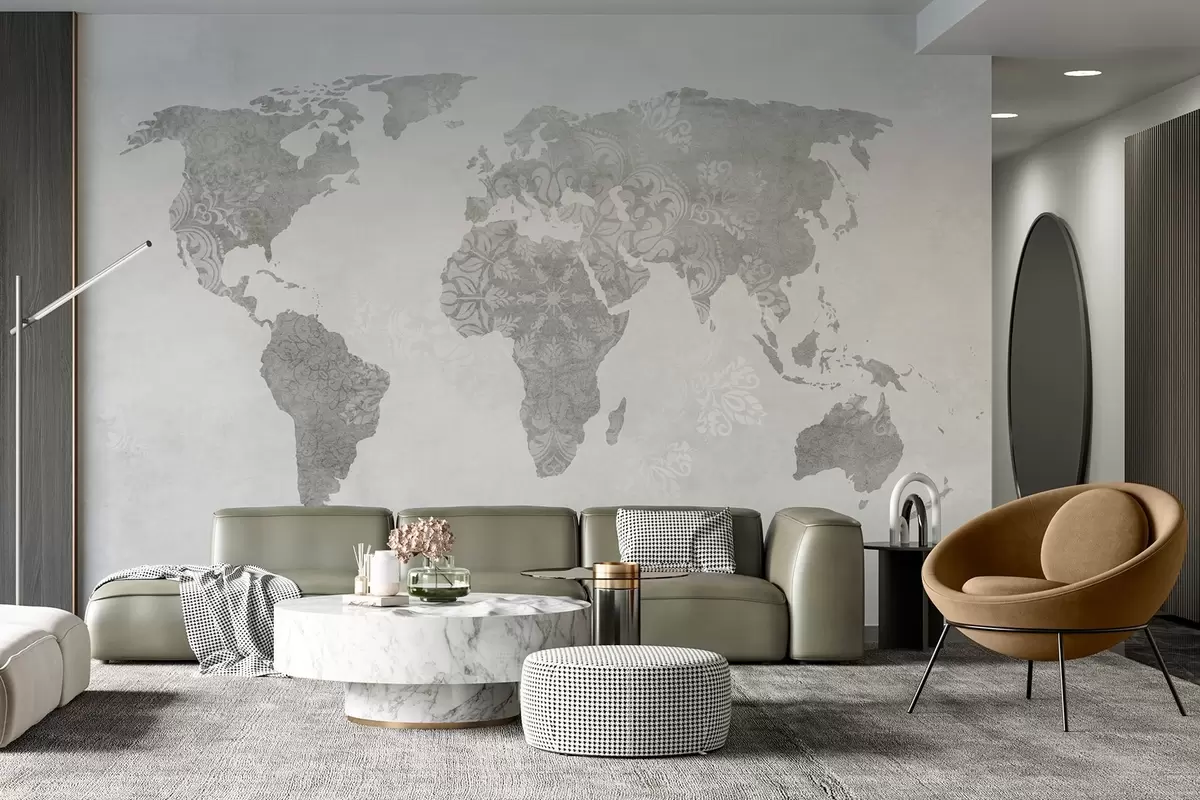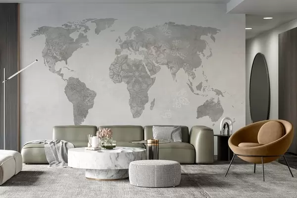 Fotomurales Mapamundi con motivos, tonos monocromos Nr. w03954v1