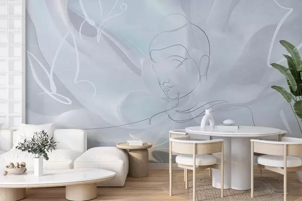 Fotomurales Abstracción floral con dibujo lineal de Buda, colores azules Nr. w04004v1
