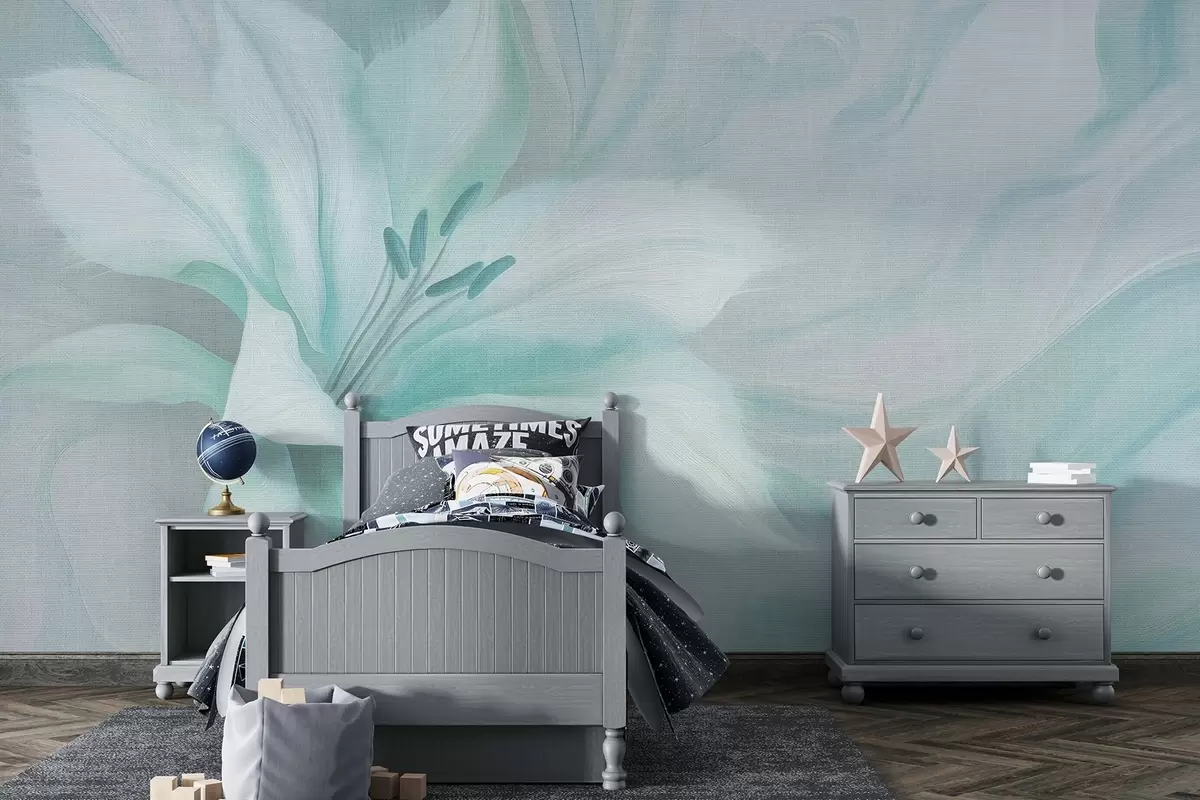 Fotomurales Flor de lirio abstracción fluida, floral, colores aguamarina Nr. w04006v3