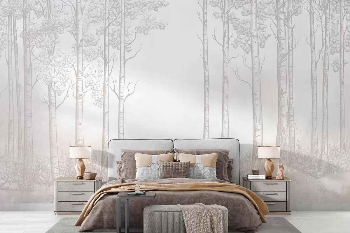 Fotomurales Bosque con abedules, minimalismo, naturaleza, paleta de colores beige Nr. w04009v3