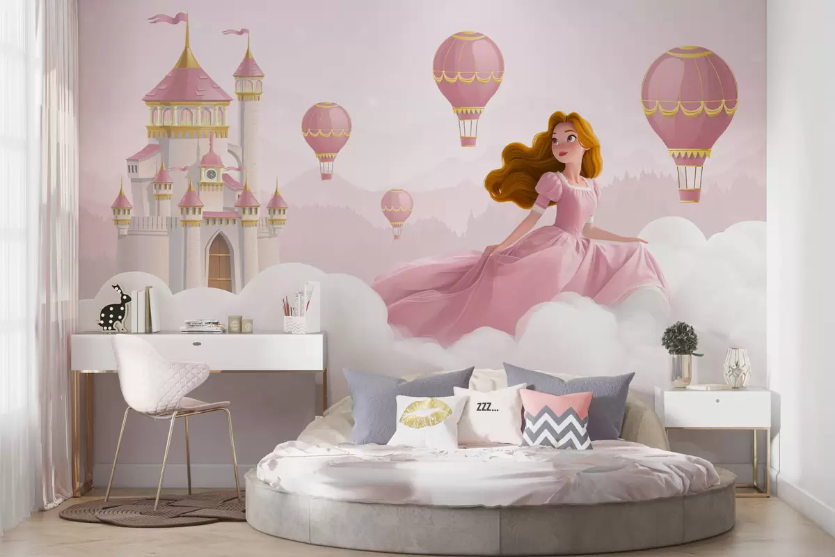 Fotomurales Princesa entre las nubes sobre el fondo del paisaje con el castillo Nr. w04015v1
