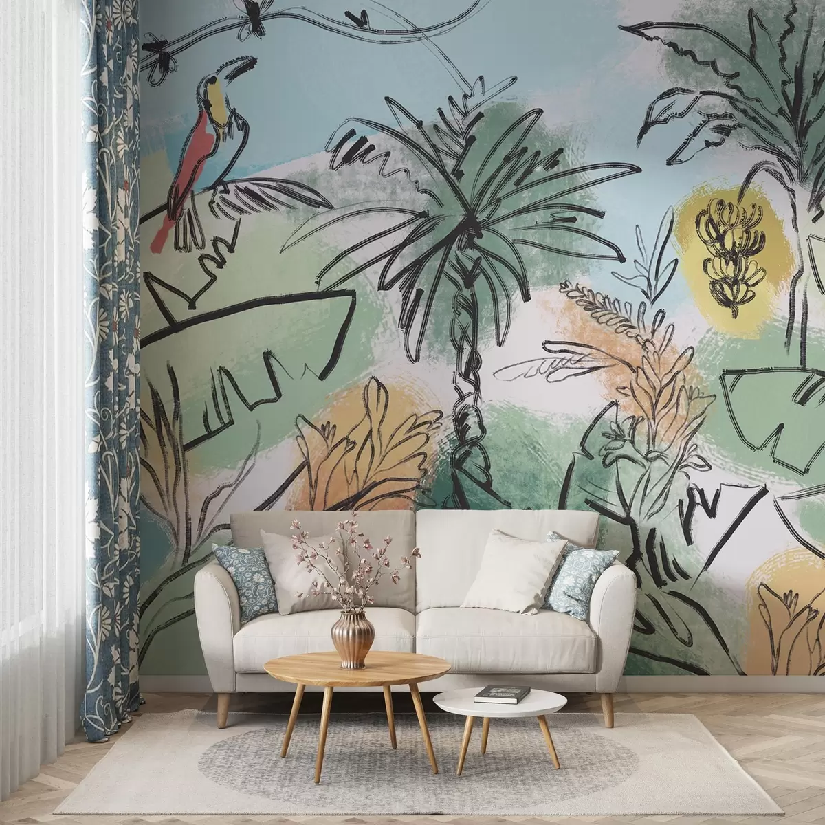 Fotomurales Estampado tropical con loros, colores vivos, trópicos Nr. w04019