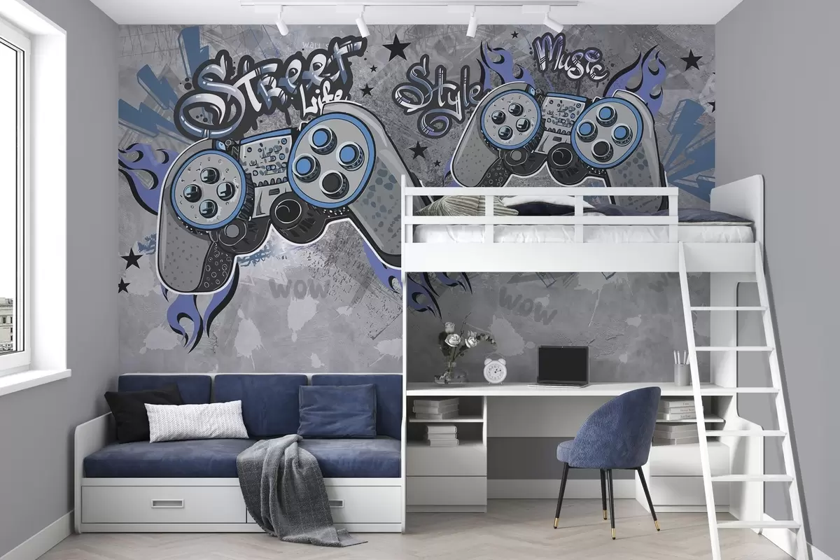 Fotomurales Consolas estilo street art en la pared grunge Nr. w04054