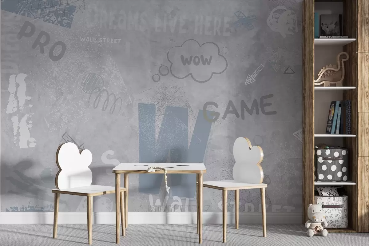 Fotomurales Diseño en estilo street art con inscripciones en color azul sobre fondo de muro de hormigón Nr. w04056v1
