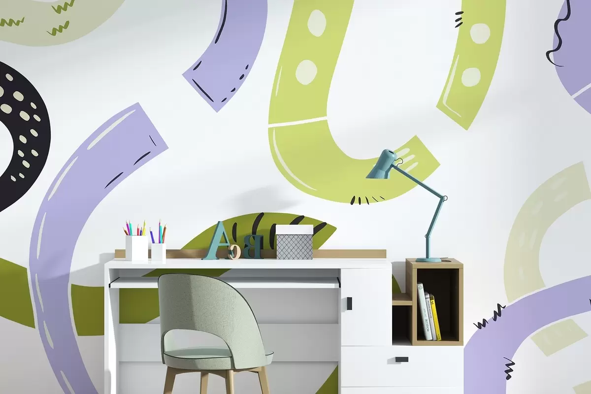Fotomurales Dibujos abstractos, juvenil, garabatos, verde, morado Nr. w04066v1