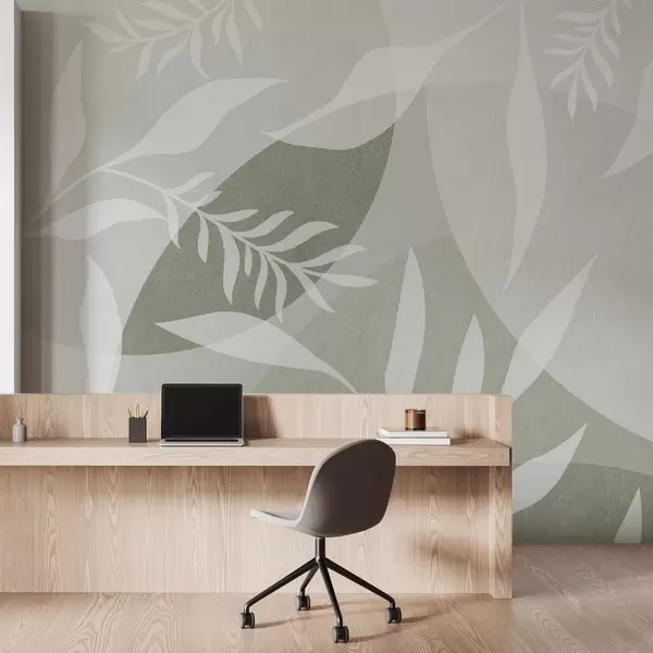 Fotomurales Siluetas de ramitas sobre un fondo de círculos abstractos, tonos verdes Nr. w04270v2