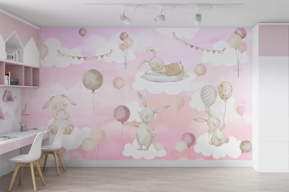 Fotomurales Conejos con globos sobre nubes Nr. w04337v1