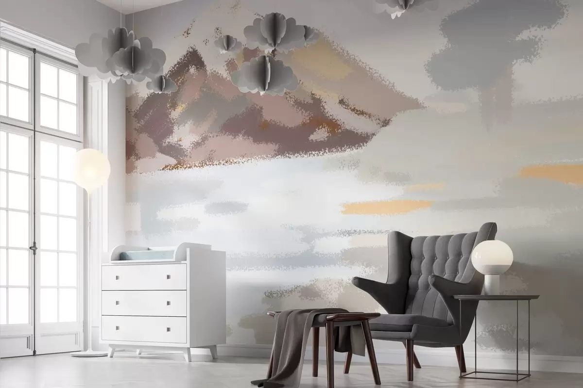 Fotomurales paisaje abstracto al estilo de un dibujo infantil Nr. w04498